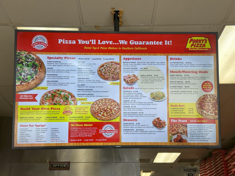 Welcome to Porky's Pizza, a beloved establishment located at 3918 Atlantic Ave, Long Beach, CA. This casual dining spot offers a delightful menu that seamlessly combines the classics: pizza, salads, and desserts. Porky’s prides itself on hearty specialty pizzas, like the Porky's Special and Smoked Bacon Hawaiian, each crafted with fresh ingredients and a sprinkle of passion. For health-conscious diners, the array of salads, including the refreshing Caesar Salad, adds a perfect balance to the menu.